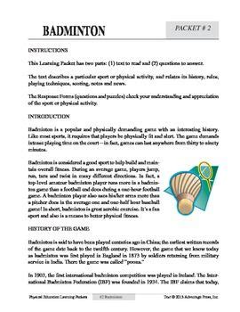Read Online badminton physical education learning packets PDF